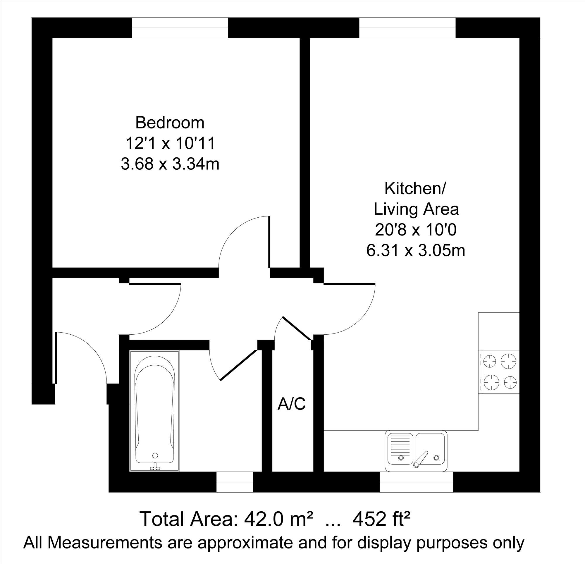 The apartment has been tastefully refurbished to a high standard throughout and comprises of a hallway with deep storage cupboard, one double bedroom, a luxury fitted bathroom complete suite with electric shower unit, a spacious living room with an adjoining quality fitted kitchen to include an extractor hood, a four plate electric hob and oven.