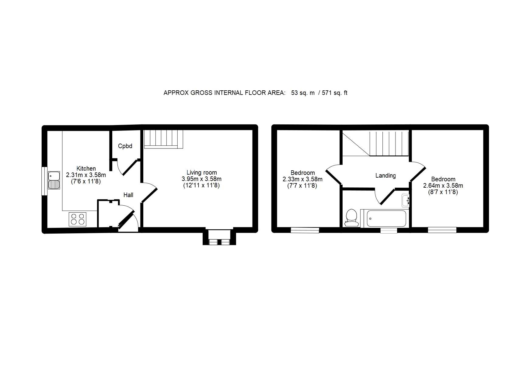 2 Bedrooms 1 Bathroom 1 Reception